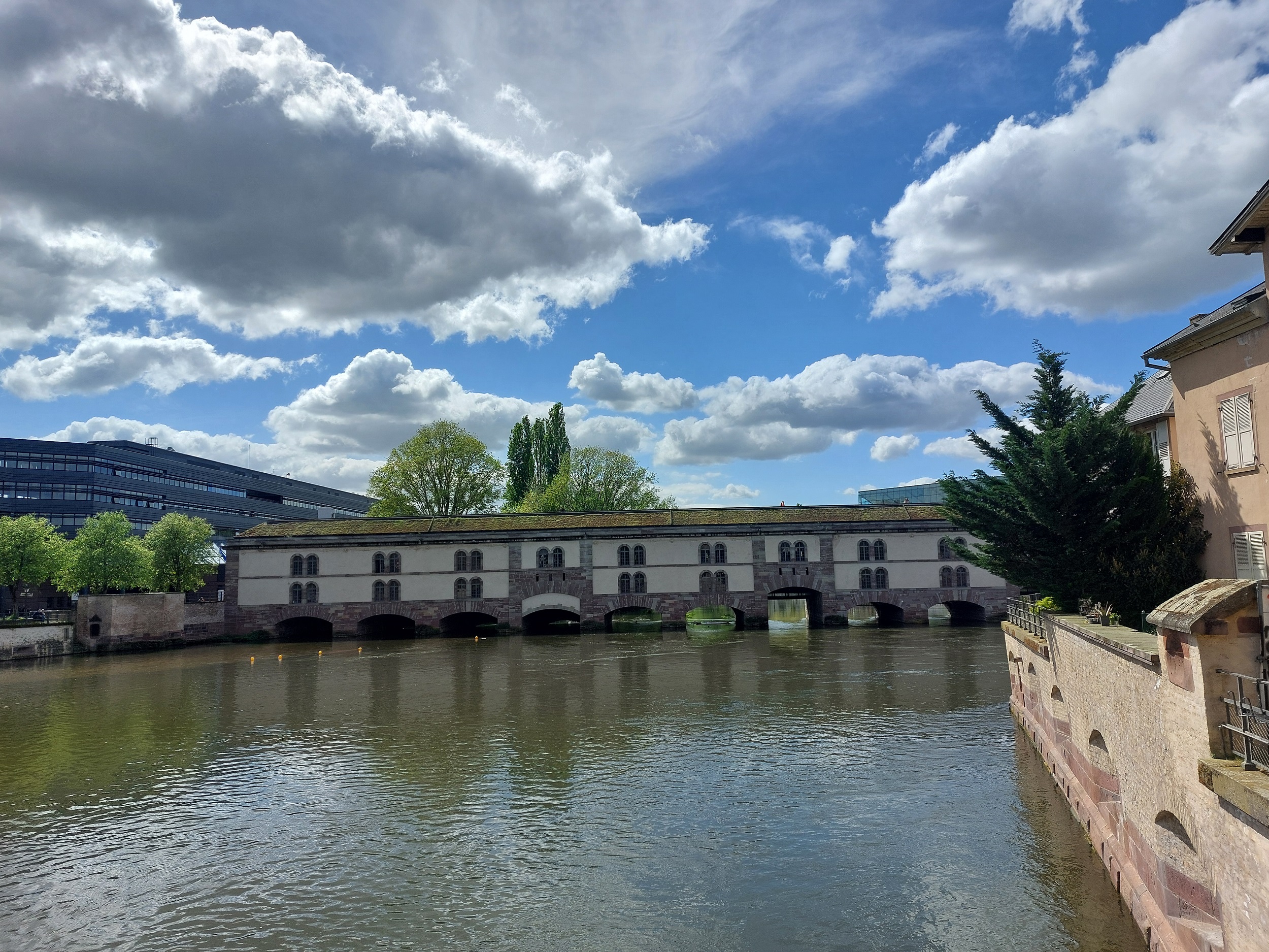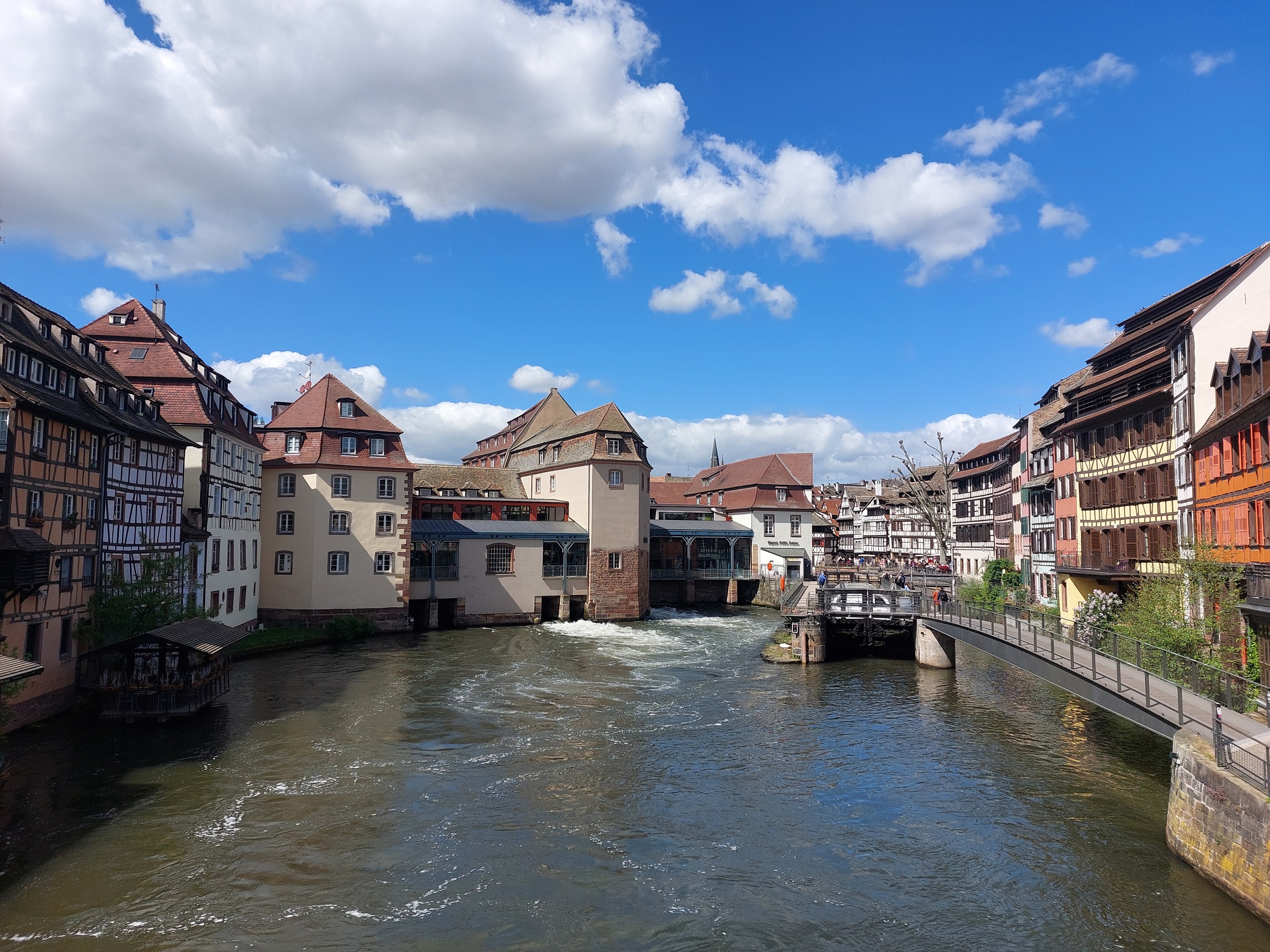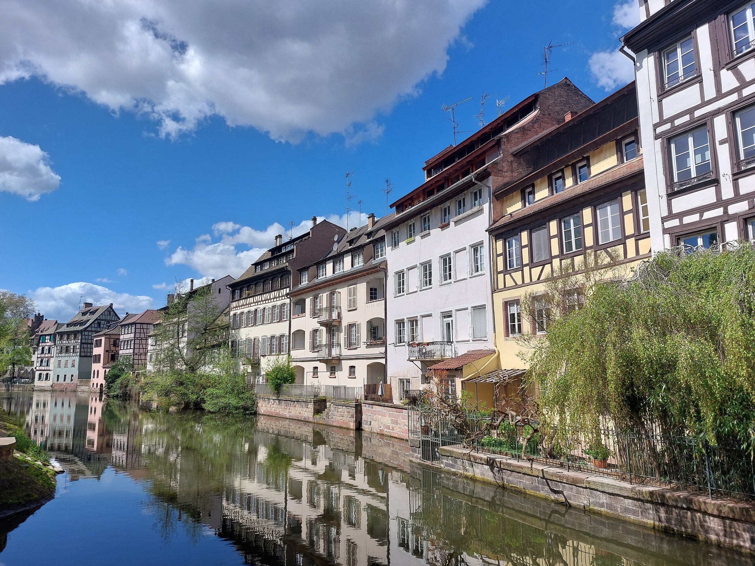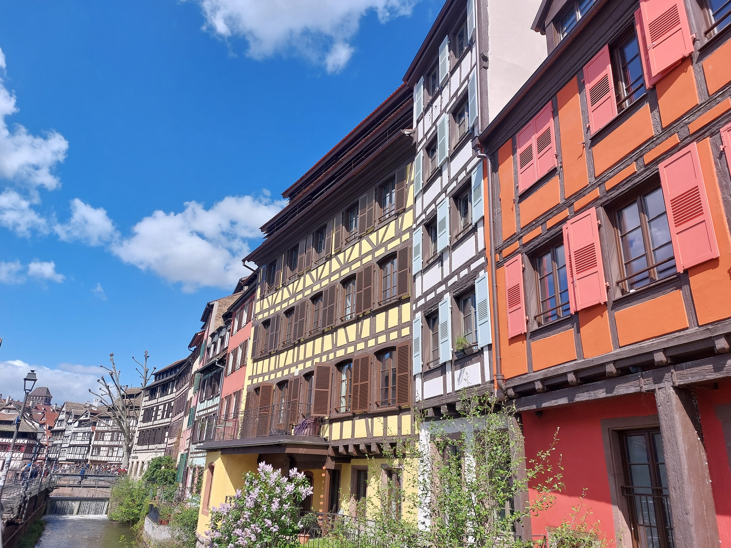 스트라스부르를 가로지르는 일강의 운하와 주변 풍경